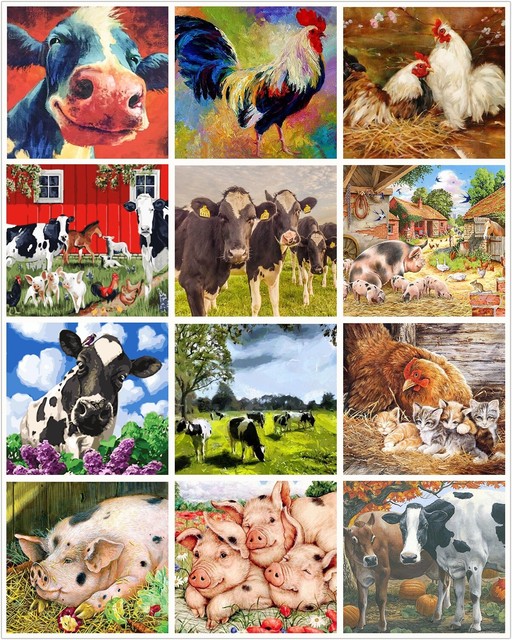 Amazon Com Paint By Number Kits Farm Cows And Pigs 16x20 Inch Linen Canvas Paintworks Digital Oil Painting Canvas Kits For Adults Children Kids Decorations Gifts No Frame