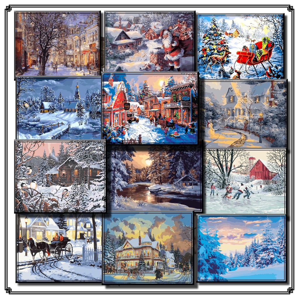 40 50cm Diy Digital Oil Painting Paint By Numbers On Canvas Snow Scenery Shopee Malaysia