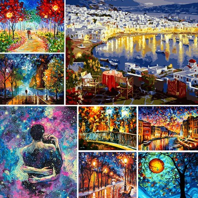 Painting By Numbers Night Scenery Diy Oil Coloring By Numbers Street Landscape Canvas Paint Art Pictures Home Decor Paint By Number Aliexpress